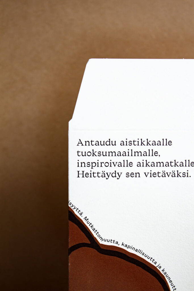 Ett genomgående motiv på förpackningen skapar en karaktäristisk detalj i butikshyllan.